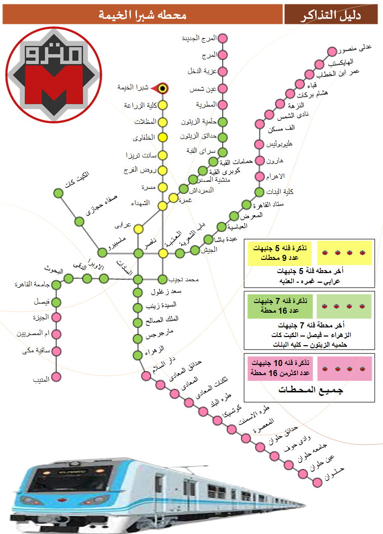 "ميدان المؤسسة – محطة شبرا لسكك حديد مصر – موقف سيارات (موقف سيارات مسطرد – بيجام – المصانع- منطى ) طريق القاهرة الاسكندرية الزراعى – مستشفى النيل – كورنيش النيل – قسم أول شبرا الخيمة موقف اتوبيسات هيئة النقل العام – موقف سيارات 6 أكتوبر – شارع ناصر- كريستال عصفور- ميكرباصات تحرير رميسس – مصانع الزجاج والقماش والملابس"